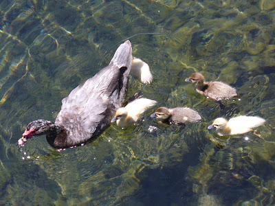 | This mother and ducklings was at Wailoa park: we were on the bridge going across the river when we spotted this crew. |