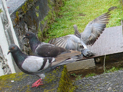 | Yeah, it's just a pigeon, but I've never gotten such a nice wingspread before. The pigeons were flocking to us because Max and I were feeding the fish at Kalakaua Park. Yeah, we fed some pigeons, too. |
