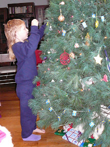 | Max has also never gotten to help decorate a Christmas Tree, so they left a few ornaments off for him to finish up with. |